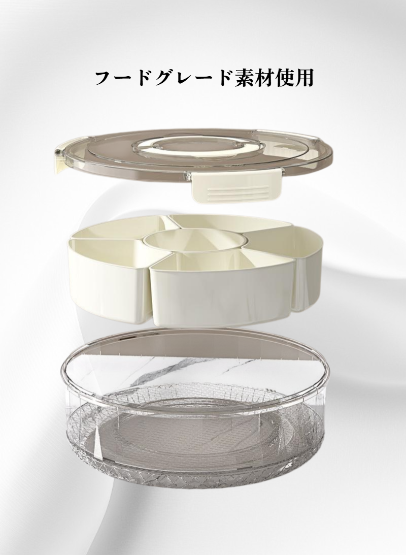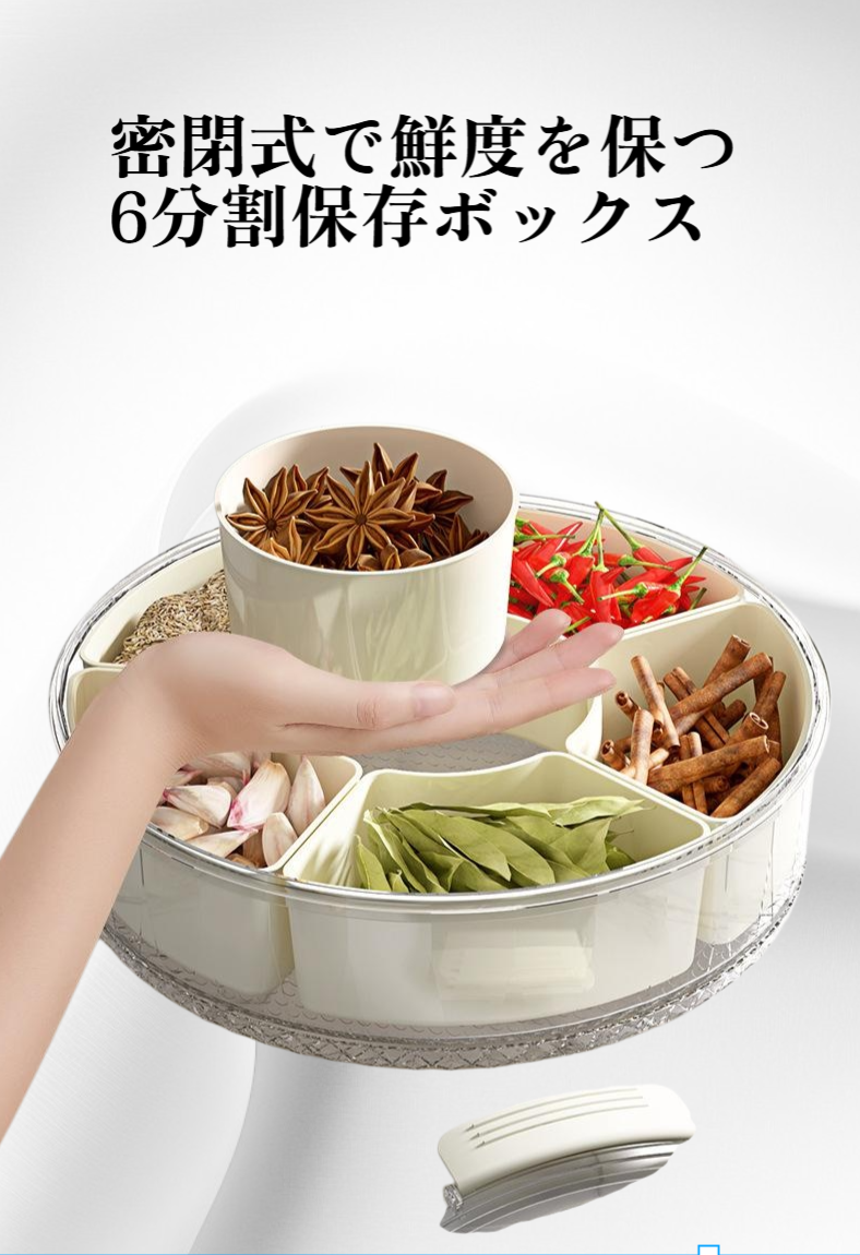 6分割設計で食材を仕分け、密閉式で鮮度を長持ち。携帯や冷蔵庫保存に対応し、果物やサラダの収納に便利なフードグレード素材使用。