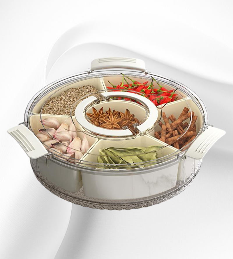 フードグレード回転式6分割保存ボックス 密閉式果物サラダ収納ケース 携帯冷蔵対応