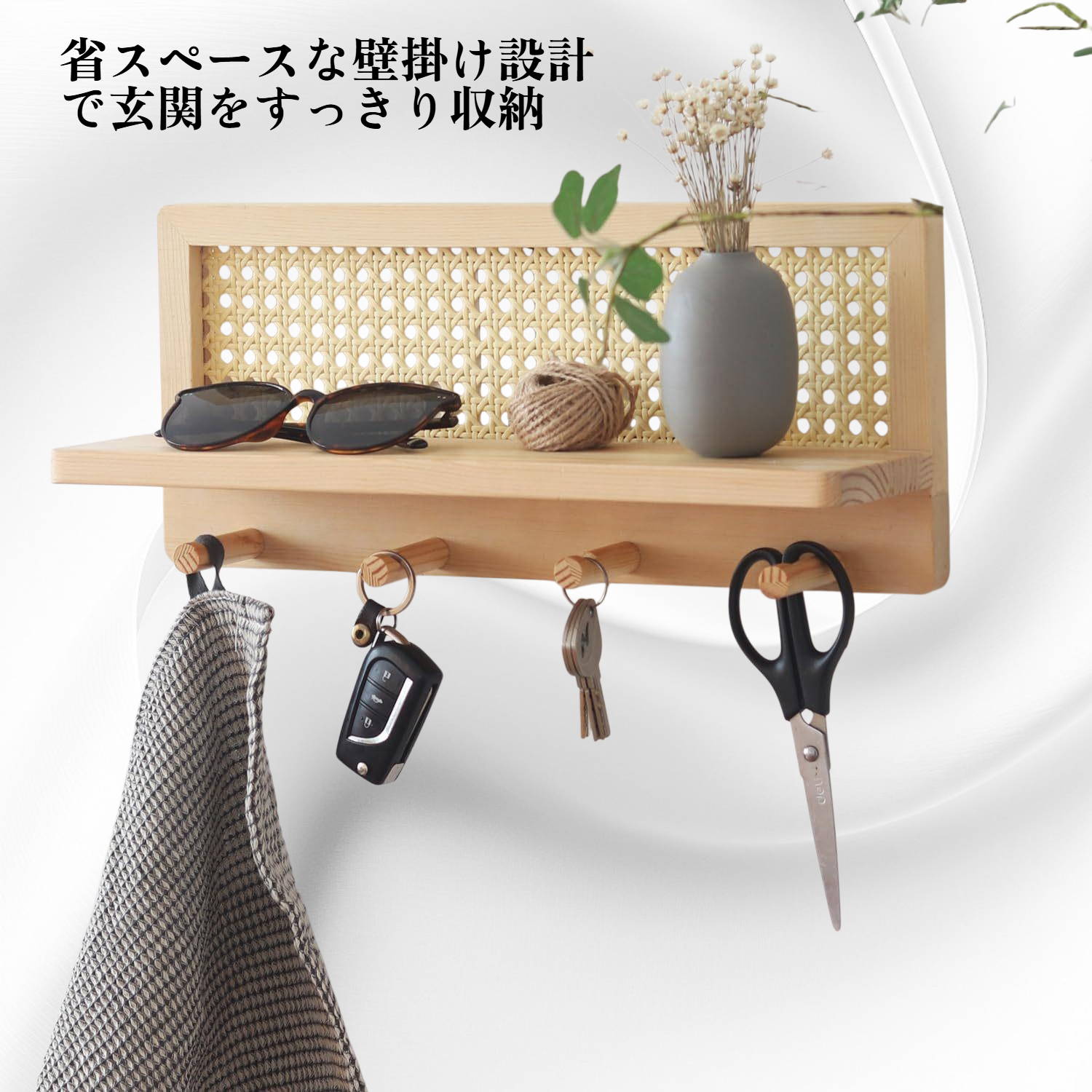 日本スタイル玄関収納 壁掛け鍵フック付き本・雑誌ラック
