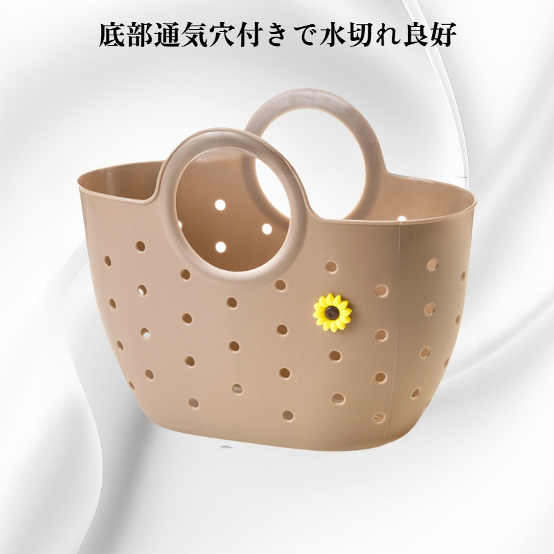 シンプルデザインの多機能バスルーム収納バスケット。底部通気穴付きで水切れ良好。学生寮や限られたスペースにも最適です。